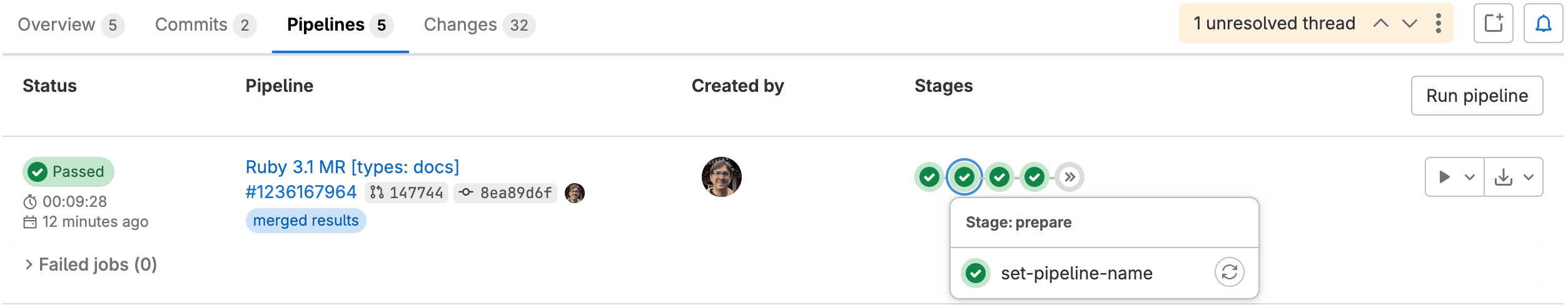 running pipeline job. This ref can be created even after the associated branch or tag has been