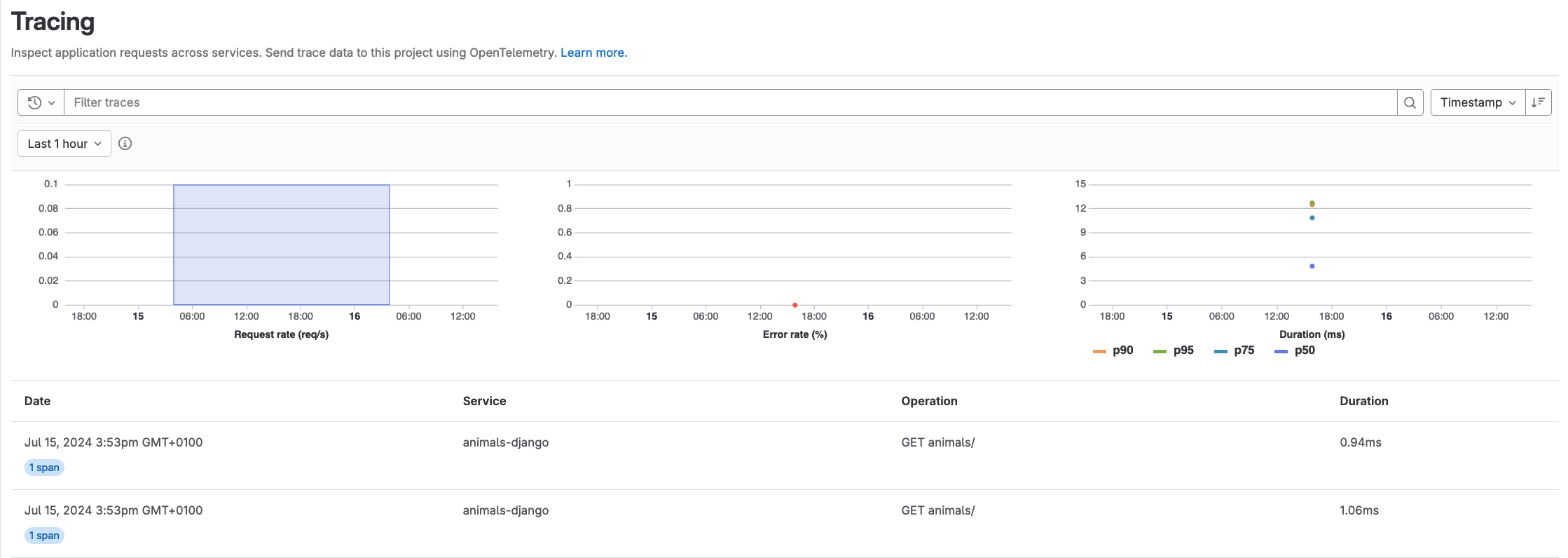 /animalsa few times, you should see traces in the GitLab UI. -