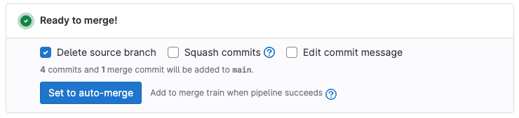 After you set auto-merge, these checks must all pass before the merge request merges: